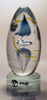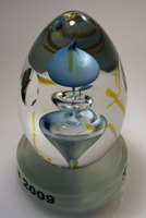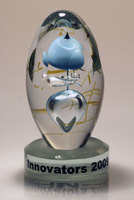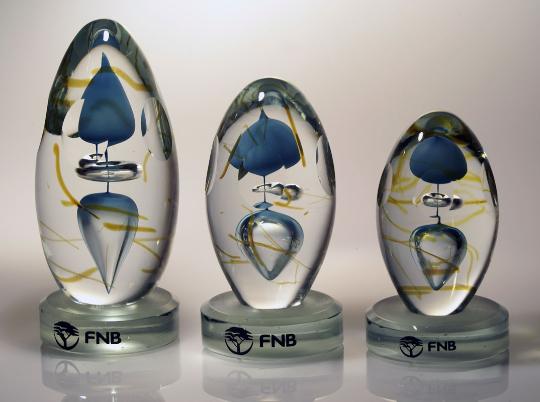 Hand blown glass elements with corporate colours.