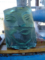 Outside was my domain. I ground and cut and polished away with fervour. Using the un-annealed cullet made things tough too. All my work cracked in one way or the other. This didn’t matter as the process was the reward, understanding how to approach the chunk of glass purely sculpturally. This process was far removed from my usual approach to my work.