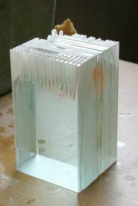 Start with a block of glass and then carve with a diamond saw