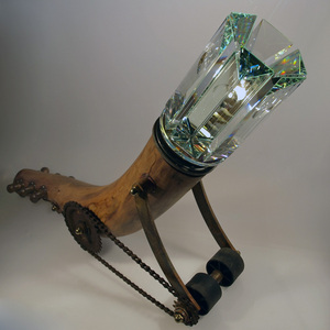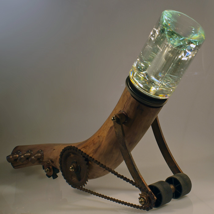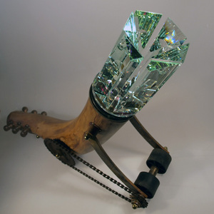Inspired by our affiliation with the Sun and the long forgotten gizmos that were built to harness its powers. The prismatic lenses can be turned. Interaction with the sculpture is encouraged.