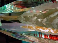 “+- (plus/minus)” is a search for balance and creating positive space from the negative space. Glass lends itself very well for this purpose due to its translucency. By removing or cutting the glass away with a diamond saw a cavity is left that gives the impression of a solid within the material. Gold foil was used to accentuate the interior.