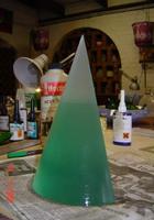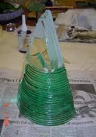 First a drawing or planning is made in the form of a design. Flat glass sheets are then cut to the approximate sizes (According to the measurements of the design, and leaving some "meat" for grinding). Then the sheets are laminated together using a UV-bonding adhesive.