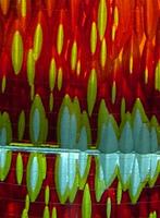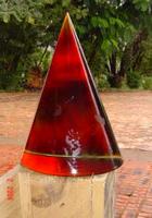 For the final touch, cuts were made into the thinly laminated back, revealing the different layers of colour and giving the illusion of fire. The production of the glass is now finished and ready to be assembled into the sculpture.
