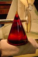 This is firstly done on poplar wood disk. A polishing medium gets applied to the disk with water. After the pre-polish we take the glass to a high-gloss polishing disk made of felt and the polishing medium gets applied once again with water. Mechanical polishing usually consists of two to three steps.